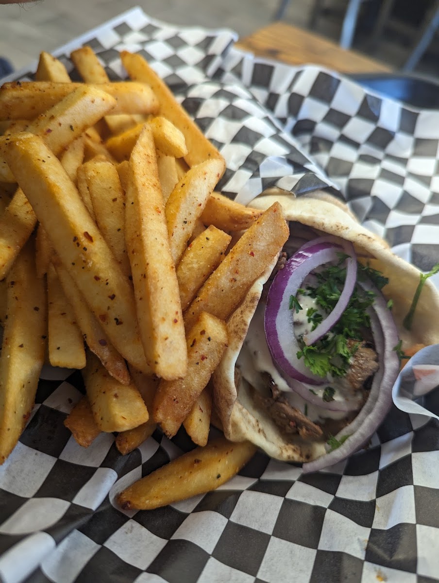 The restaurant’s menu also includes some other Mediterranean favorites, like kebabs, gyros, and pita wraps. The kebabs are seasoned beautifully, offering just the right balance of spices and a delicious char from the grill. The gyros, served in pita or as platters, are another crowd favorite, with a combination of well-seasoned meat, fresh vegetables, and tangy sauce, all wrapped up to perfection.
